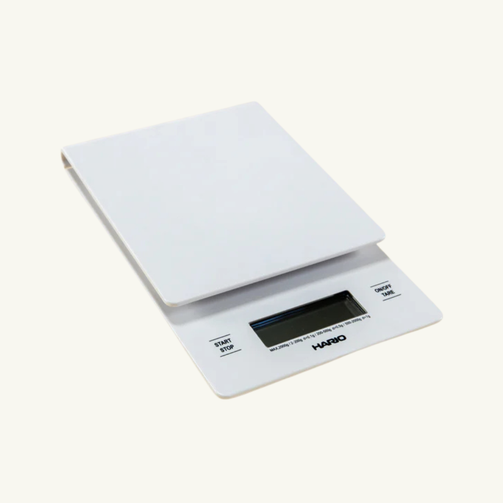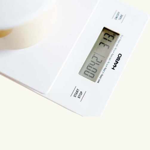 This scale is the best bang for your buck. There are much more expensive scales on the market, however, I always come back to this scale as the tried and true winner for coffee pros (without having to fork over your first born child to measure beans).